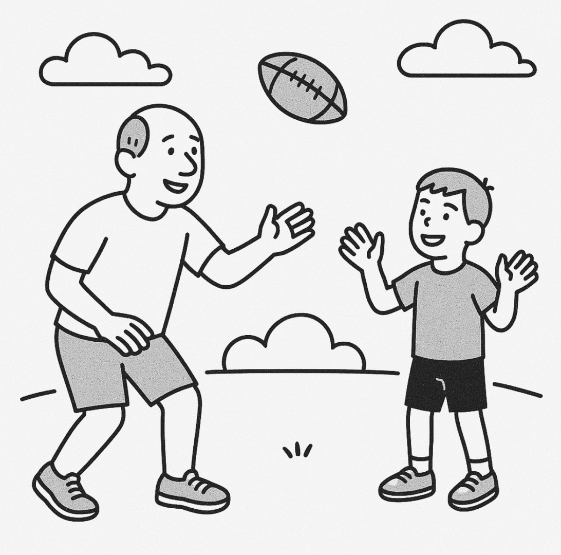 Squeezes in football with his sons