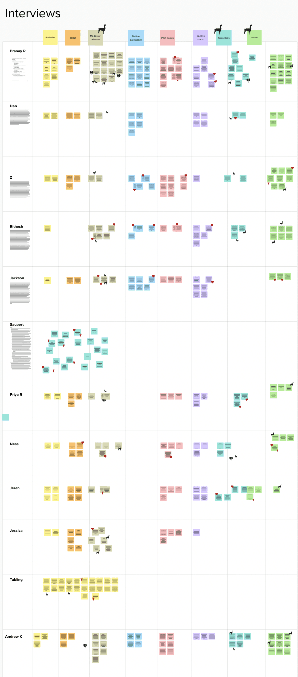 Interview data was clustered into modes of behavior, values, and pain points. We looked for emotional and behavioral patterns rather than surface complaints.