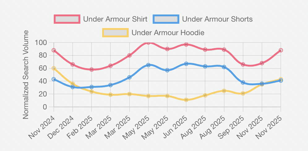 Brand strength: UA has strong performance tech and legacy credibility in technical gear - gaining popularity first from their athletic undershirt tech.
