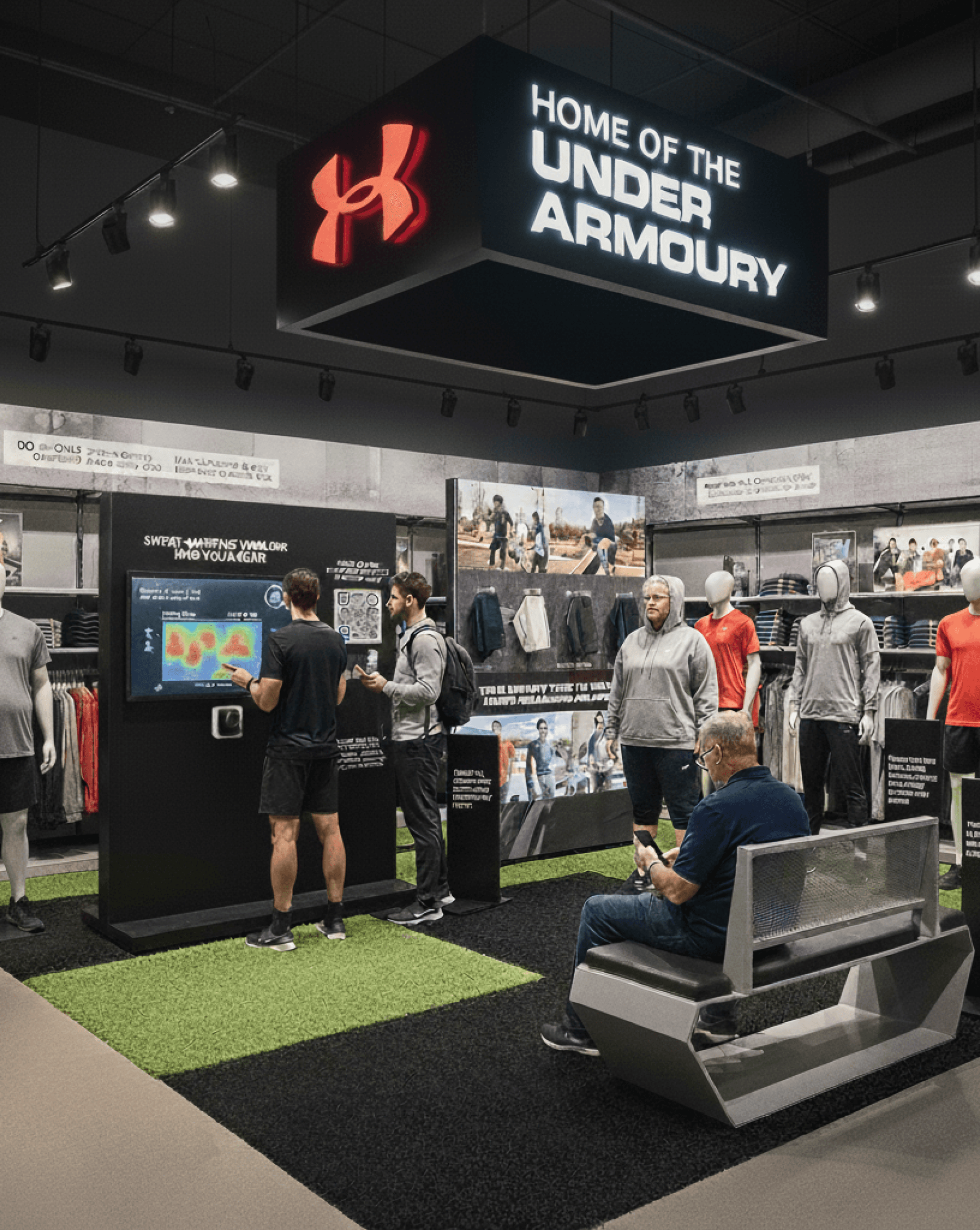 UA offers lots of tech and gear, but it’s mostly explained through written signage that shoppers often ignore.